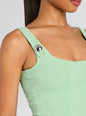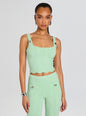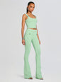 The Aloe Knit Top offers a body hugging silhouette with its soft, breathable knit fabric. Designed to pair seamlessly with the Joliet Pants, this crop top transitions smoothly from day to night, providing versatile sophistication. Shown here in Metallic Mint.