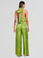 The Antoinette Pant adds effortless elegance to your vacation wardrobe. Crafted in lustrous satin, this wide-leg silhouette instantly elevates your wardrobe. Designed to pair with the Martana Top, it creates a coordinated set ideal for resort evenings and elevated nights out. Shown here in Kiwi Trop Jacquard.