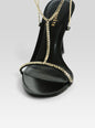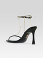 The Finny Sandal elevates any evening with its sleek, strappy silhouette and striking T-chain detail. Ideal for girls’ nights out and special occasions, it offers a modern, unique look. Shown here in Black.