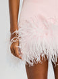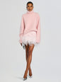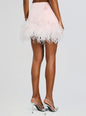 The Florriette Feather Skirt is a mini skirt with a delicate feather trim. Finished with a hidden side zip closure, the Florriette Skirt is perfect for dinner dates and cocktail parties. Pairs effortlessly with the Olga Sweater for a polished look. Shown here in Ballet Slipper.