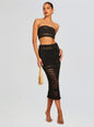 Unlock your vacation style with our Luiz Strapless Top. A refined take on signature bandeau style, this ultra-cropped piece features an intricate cross-stitched pattern across a classic ribbed knit design that's the perfect go-to for poolside lounging or beachfront strolls. Shown here in Black/Gold.