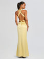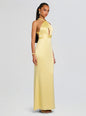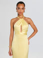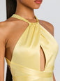 Introducing our Magnolia Dress – a true statement piece for any special occasion. This stunning piece features a high neck and a intricate cutout, perfect for turning heads as the guest of honor. With a sultry criss cross back, this dress is a work of art that will elevate any occasion. Shown here in Yuzu.