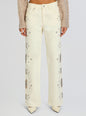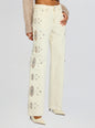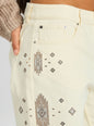 The Marinda Jean features a clean, straight-leg silhouette with intricate fair isle embroidery and functional pockets. Perfect for ski lodge days or city shopping, it pairs with a cozy cardigan or a playful going-out top. Shown here in Snowcap.